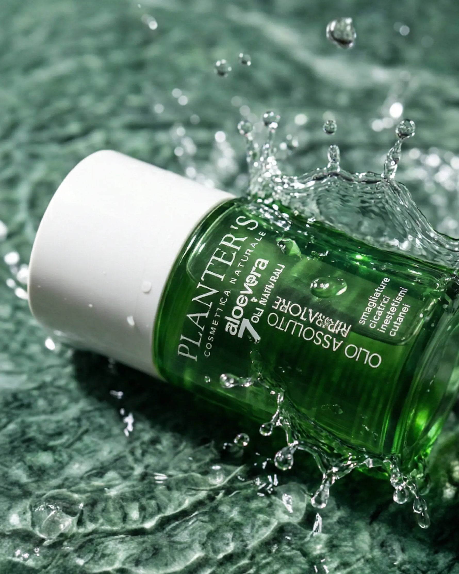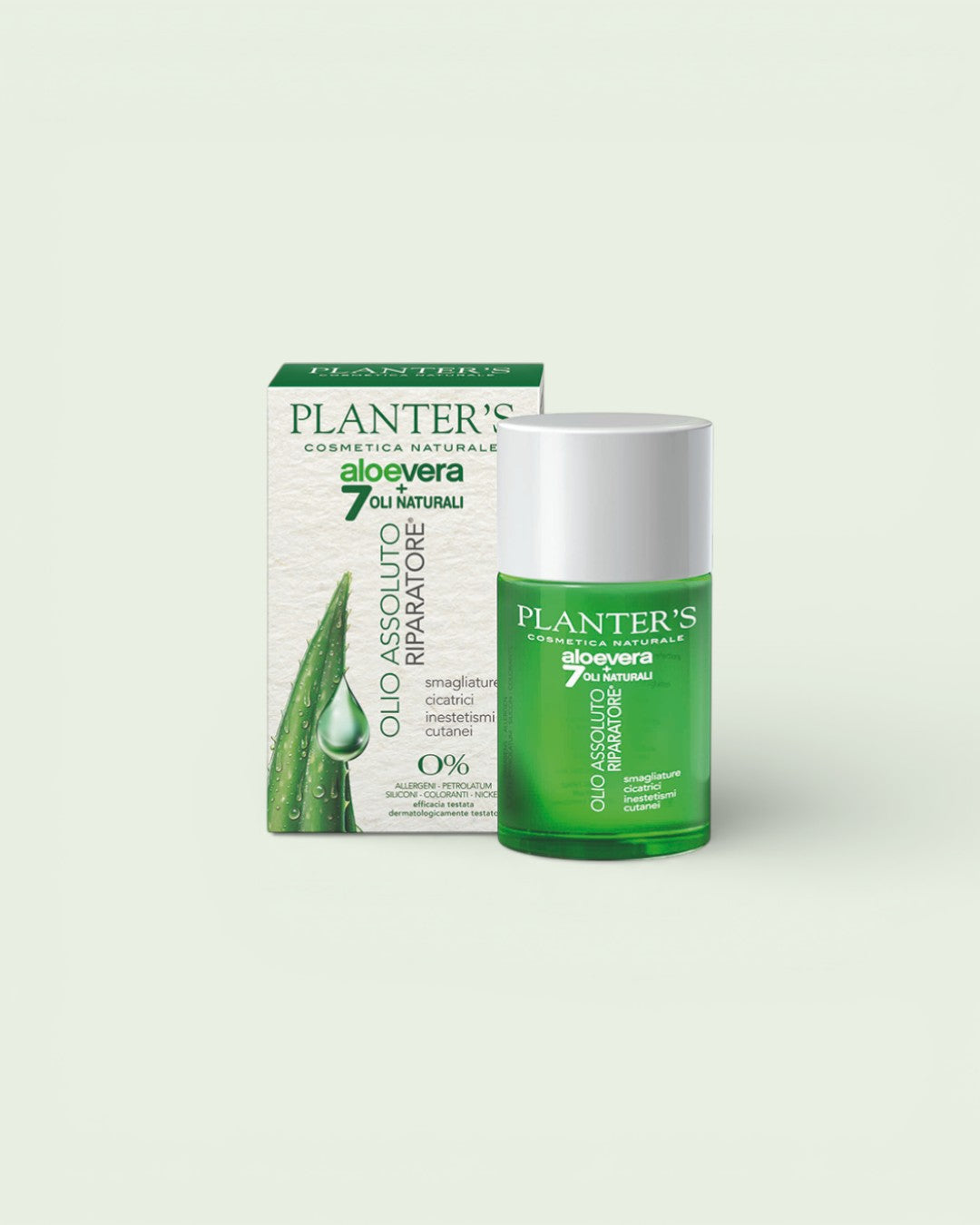 Formulazione in olio a rapido assorbimento a base di Aloe Vera più 7 oli naturali, indicata per il trattamento di viso, mani e corpo.